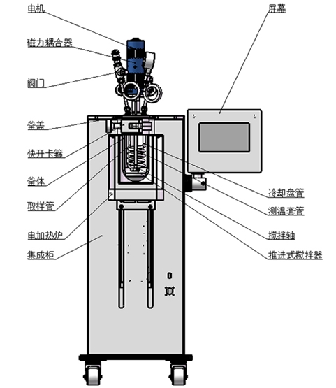 產(chǎn)品功能和特點:升降型式,機電一體化設(shè)計、結(jié)構(gòu)緊湊;框架支撐結(jié)構(gòu),配腳輪方便移動;主體可快開設(shè)計,開閉釜操作方便、快捷;升降輔助機構(gòu)方便操作,手動/電動可選;高扭矩磁力傳動,配優(yōu)選電機,提升運行穩(wěn)定性;攪拌支持定制槳葉類型,適配多樣化攪拌需求;加熱爐傳熱快,均熱效果好,效率可調(diào);真彩色觸控屏,模塊化顯示,控制界面操作簡潔;支持遠(yuǎn)程控制,具備RS485通訊口,配上位機軟件;可顯示工作時間/溫度/轉(zhuǎn)速/壓力,PID自整定控溫精準(zhǔn);具備安全連鎖功能,超溫超壓報警;具備數(shù)據(jù)采集,記錄以及報表導(dǎo)出功能;支持選配加料、計量、取樣、冷凝等擴展功能。